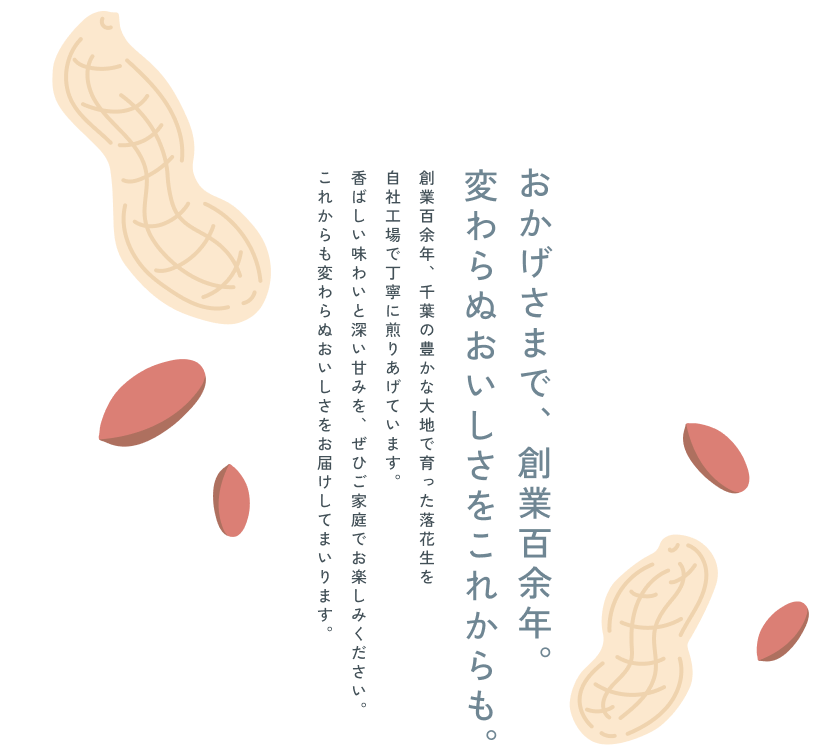 おいしい落花生をみなさまにお届けして百余年。おいしさの秘訣は、卓越した技術にあります。