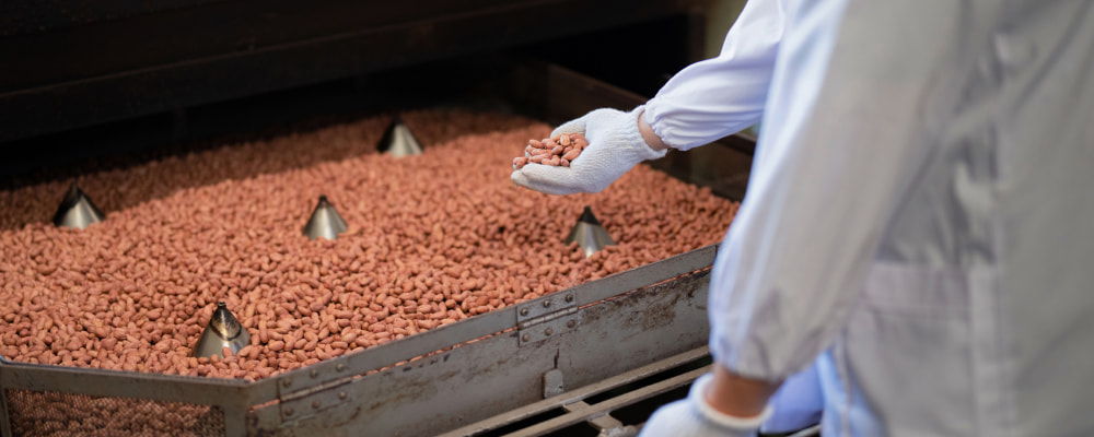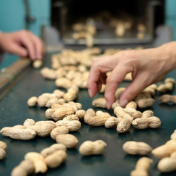 自社工場で一粒一粒丹精を込めて、じっくりと丁寧に煎りあげています。煎りたての落花生の味と風味は格別です。