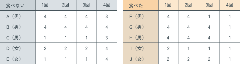 20代の男女5名ずつに「落花生を食べるグループ」「落花生を食べないグループ」に分かれ、同量のアルコールを摂取してもらいます。 アルコールの摂取率を、アルコール検知器を使用し、飲み始めて20分後から4回測定します。 実験の結果、落花生を食べたグループは全員、酔った状態から確実に下がりました。 食べなかったグループで下がったのは1名だけでした。